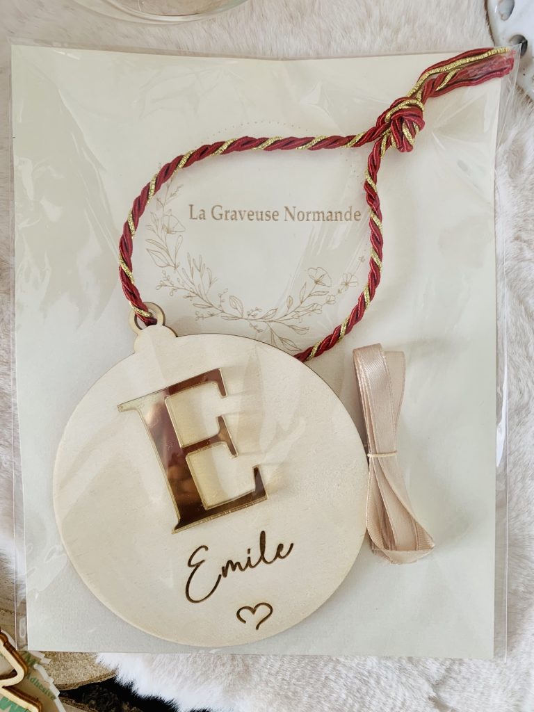 Vous avez la possibilité de choisir entre plusieurs couleurs pour la lettre ou de la choisir sans la lettre et dans ce cas nous aurons uniquement le nom gravé comme pour la boule EMILE