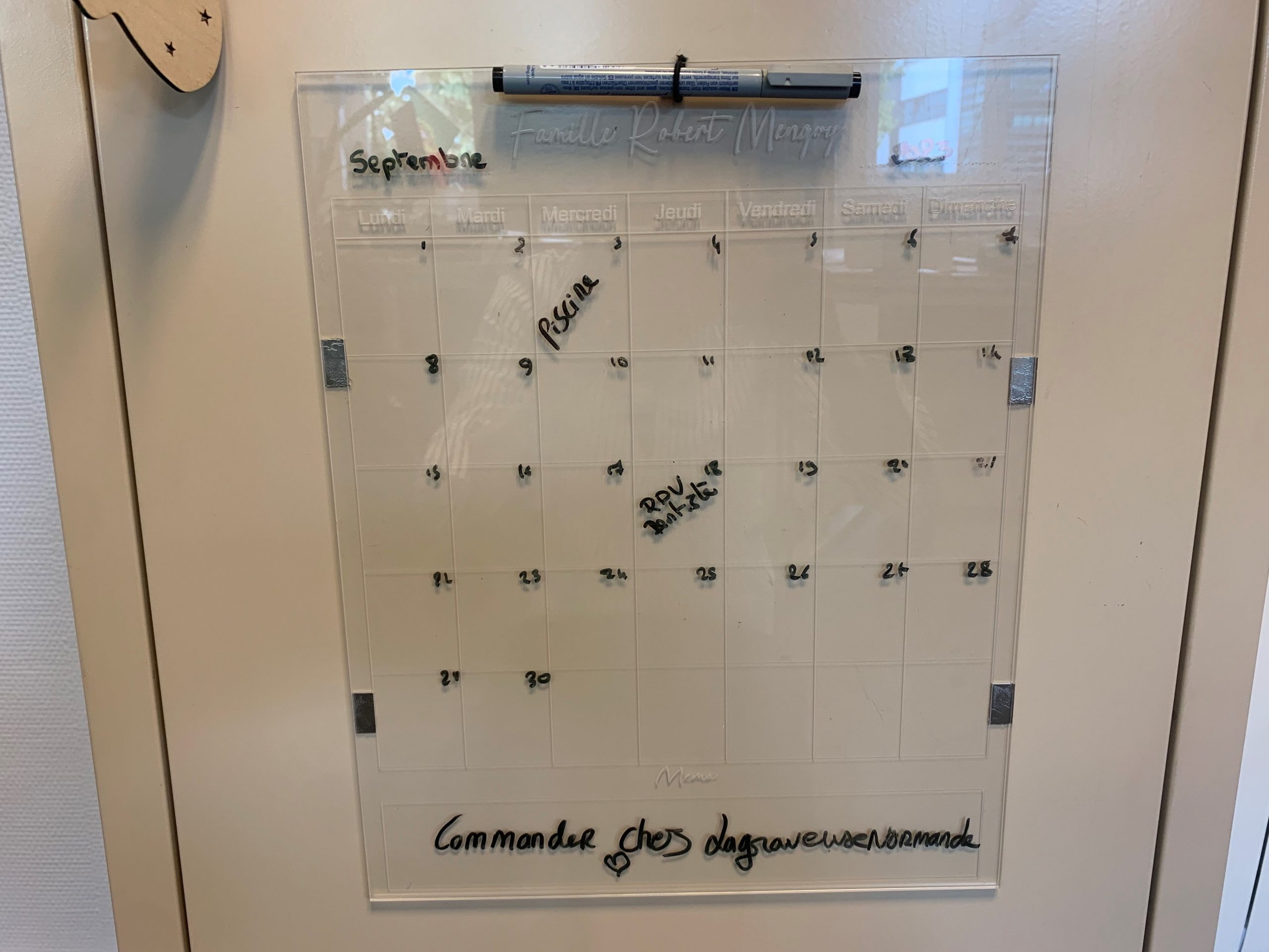 • 1er option : il se compose d’un panneau en bois de 50X30CM et d’une plaque de plexi, d’une attache pour le stylo. Vous avez la possibilité de l’accrocher grâce à son cordon ou de le fixer au mur .