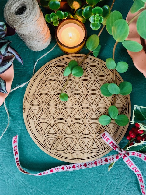 Plateau fleur de vie en chêne
